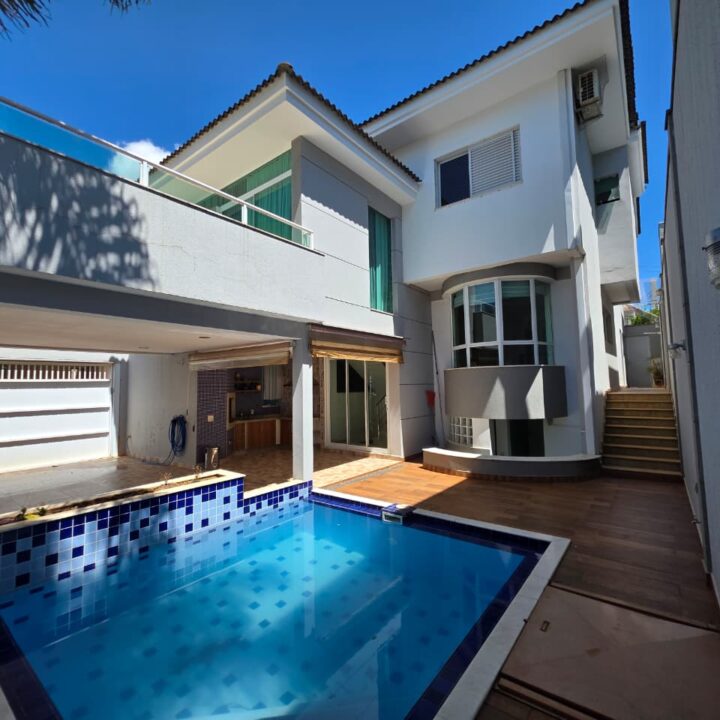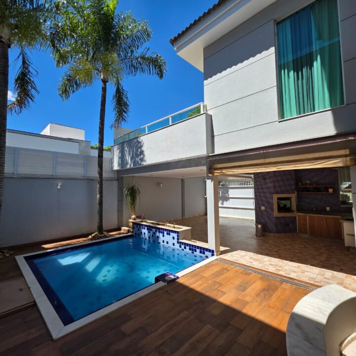 Sobrado com amplos ambientes, bem iluminados, sala dois ambientes, sala de TV, cozinha planejada, lavabo, 3 suítes sendo uma master, banheiro externo, ampla área externa com espaço gourmet e piscina.